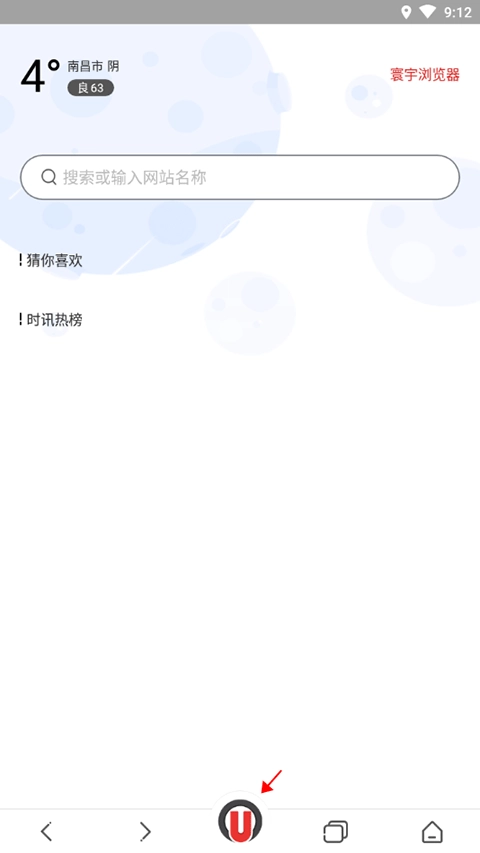 1、打开浏览器,进入主页后,点击页面底部中间位置的“u”。