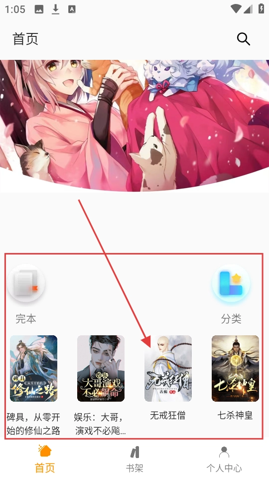 1、打开首页,找到想要阅读的目标小说,例如《无戒狂僧》,点击该小说即可进入详情页面。