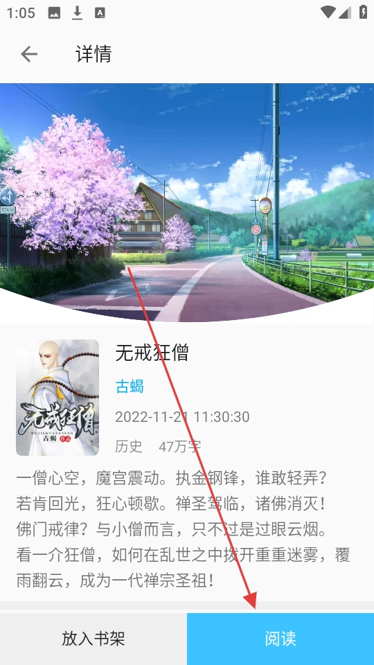 2、进入小说详情页后,点击【阅读】按钮,就能进入小说阅读页面,开启小说阅读之旅啦。