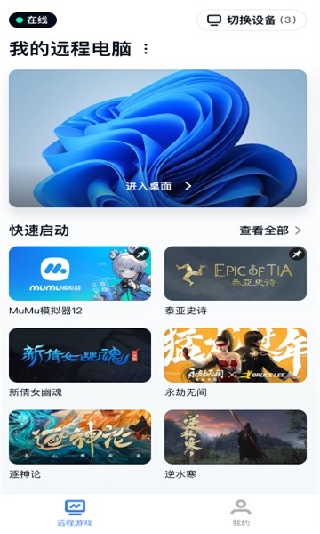 2. 在另一台设备上启动GameViewer,并登录与步骤1相同的账号。