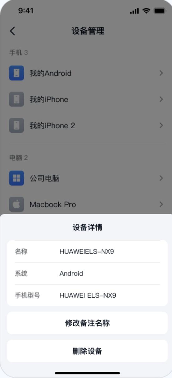 1. 点击“我的”,再点击“设备管理” 2. 选中需要删除的设备,然后点击“删除设备”