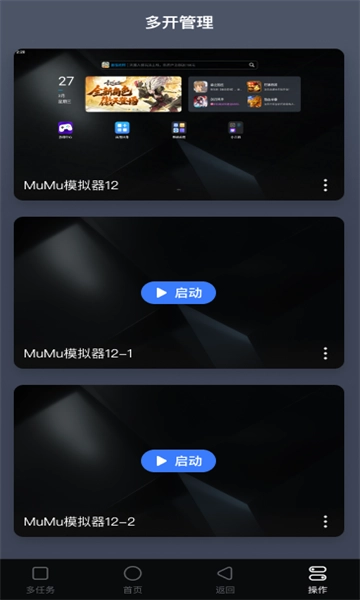点击后会弹出模拟器的多开管理界面,在该界面中能够进行新建和启动模拟器的操作。若点击处于运行状态的模拟器,即可进入MuMu直控模式。