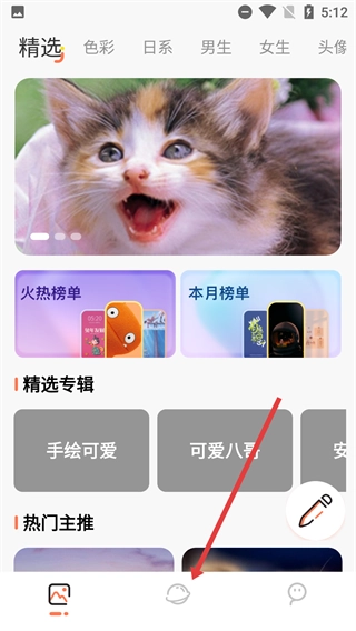 1、进入包含【精选】-【色彩】等分类的界面后,找到底部对应的图标并点击,即可切换到相应的分类页面,查看【火热榜单】等板块的内容。