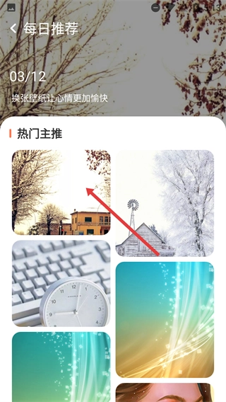 3、进入【每日推荐】页面后,在【热门主推】区域里选择目标壁纸,点击该壁纸,进入其专属的预览界面。