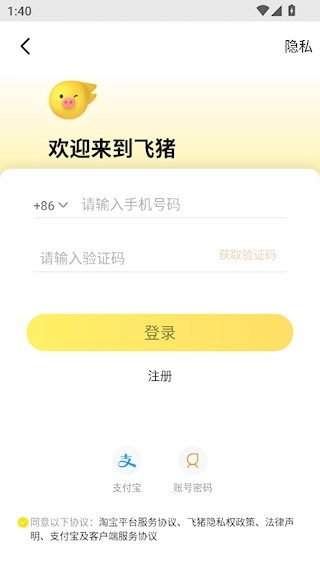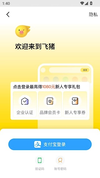 1、打开飞猪旅行应用,点击页面底部的“立即登录”按钮