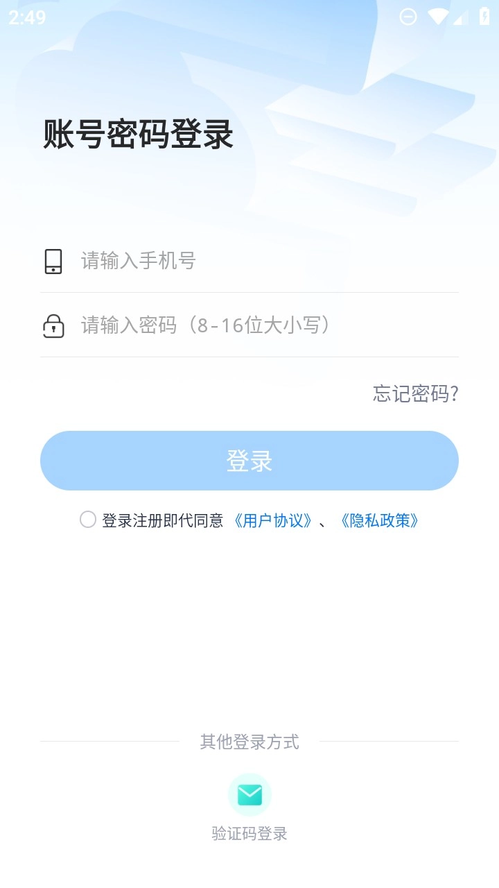 2、登入方式可以选择验证码登录或者密码登录,登录后也可以去修改密码