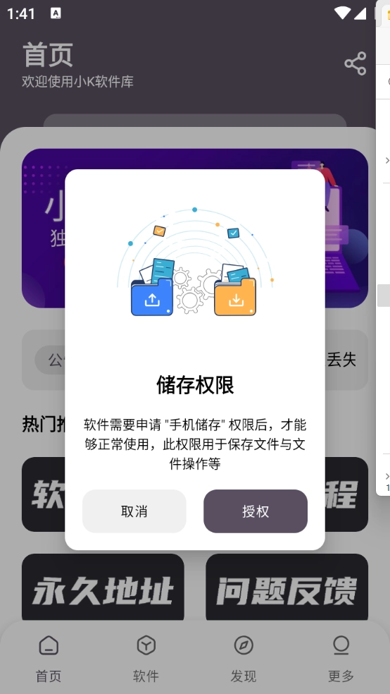 用户首先要在本站完成小k软件库的安装,并开启对应的相关权限。