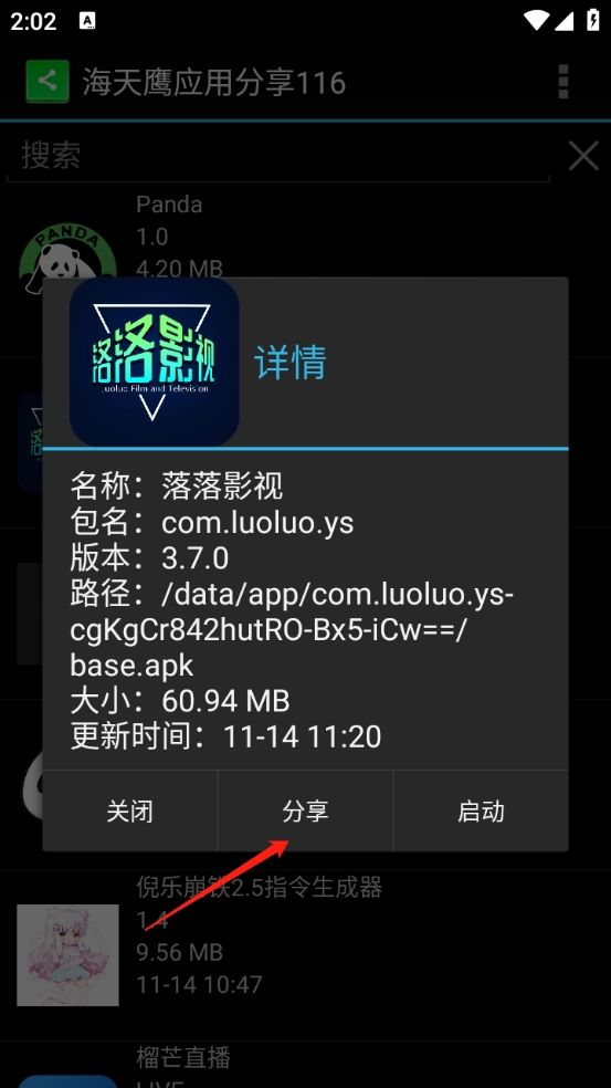 点击弹出详情,并可启动和分享。