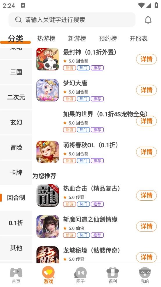 3、游戏页面提供了海量的游戏资源分类,三国、仙侠以及射击等类型都有。