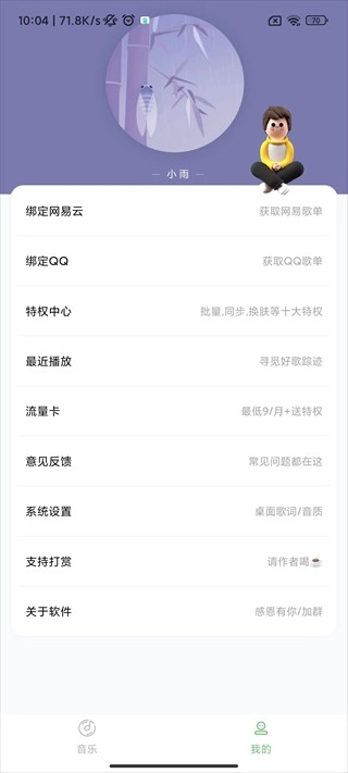 3、点击我的按钮,玩家可以自行绑定网易云、QQ账号,还可以查看最近播放的音乐;