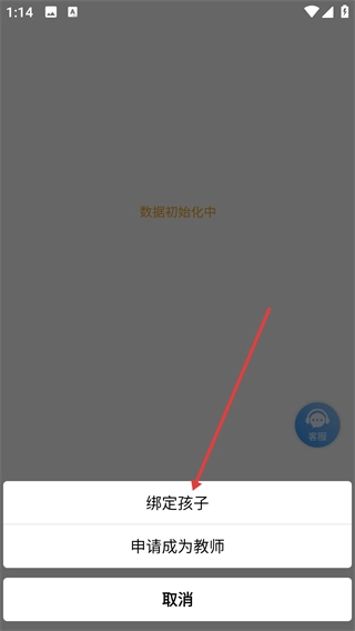 3、注册完成后进入数据初始化流程,随后选择【绑定孩子】选项,进入信息绑定页面。