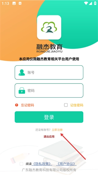 1、在登录页面点击【立即注册】选项,即可进入账号注册的信息填写界面。