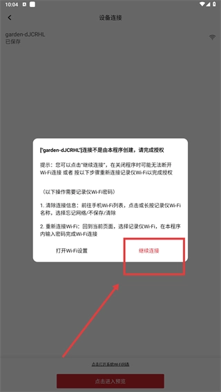 3、在“设备连接”页点击【点击进入预览】,触发设备的Wi-Fi连接授权流程。