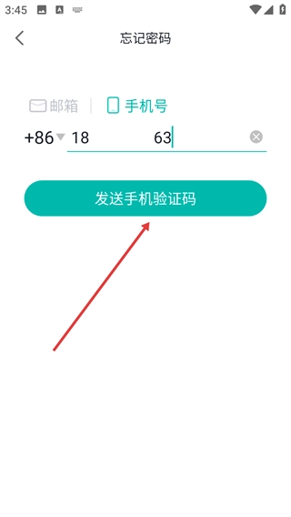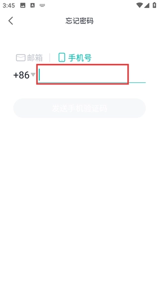 3、在忘记密码页面,选择【手机号】选项后,在对应输入框填写需找回密码的手机号。