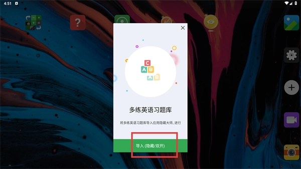 3、在操作弹窗,点击【导入/隐藏/双开-按钮】,完成对该应用的对应操作。