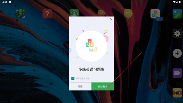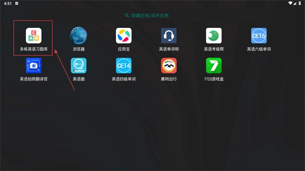 2、在应用列表,选择【多练英语习题库-应用图标】,进入该应用的操作弹窗。