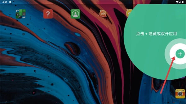 1、进入应用隐藏/双开界面后,点击那个带有“+”号的绿色圆形按钮,就能进入应用选择页面。