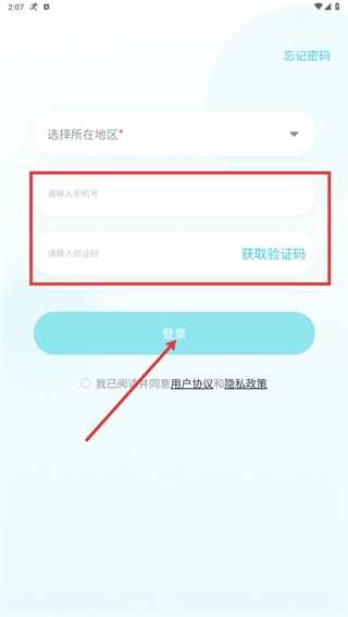 3、依次填写手机号,点击“获取验证码”并输入收到的验证码,勾选“我已阅读并同意用户协议和隐私政策”后,点击【登录】完成账号登录。