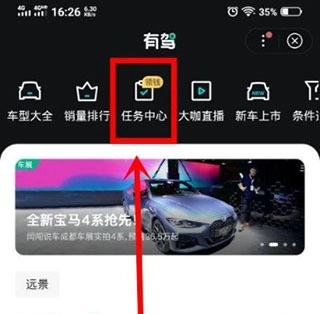 1、第一步是在手机上启动该软件,接着在页面顶部的栏目里找到“任务中心”这个选项,点击它进入对应的页面;