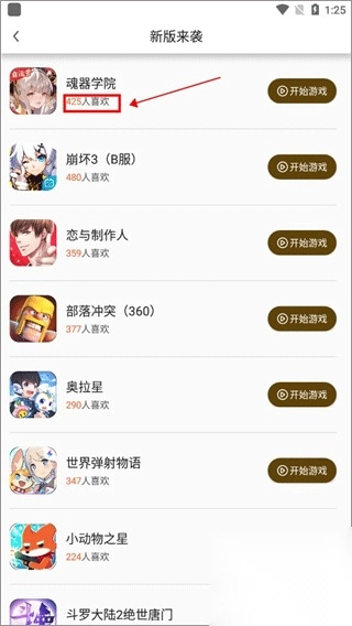 6、选择“新游专区”可以看到最近新出的一些游戏,还能在看到有多少人喜欢该游戏;