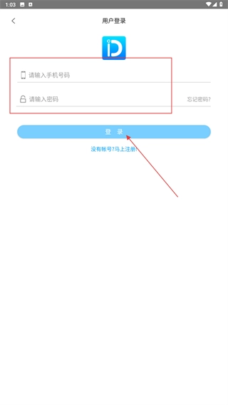 3、在用户登录界面,输入手机号码与密码,点击【登录】按钮完成账号登录。