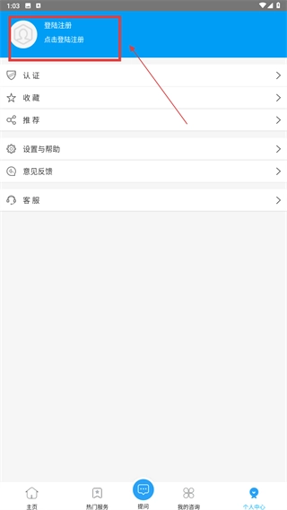2、在个人中心页面,点击【登陆注册】选项,进入账号的登录或注册流程。