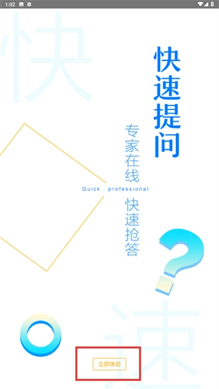 1、点击【立即体验】按钮,进入应用界面,即可开启快速提问相关功能的使用。