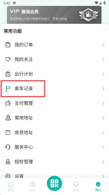 4、通过我的个人中心可以浏览乘车记录,订单信息等等