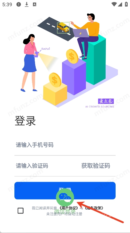 3、也可以点击微信登录用微信账号一键登录(未注册用户将自动注册)