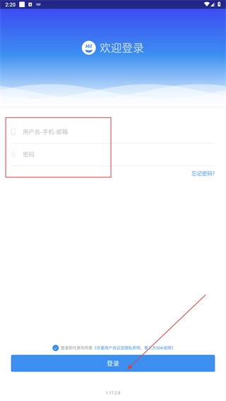 3、进入登录页后,输入用户名(手机/邮箱)与密码,勾选协议后点击【登录】完成账号登录。