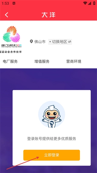 3、进入电费相关服务页面后,弹出登录提示弹窗,点击弹窗内的【立即登录】按钮,完成账号登录以使用该服务的功能。
