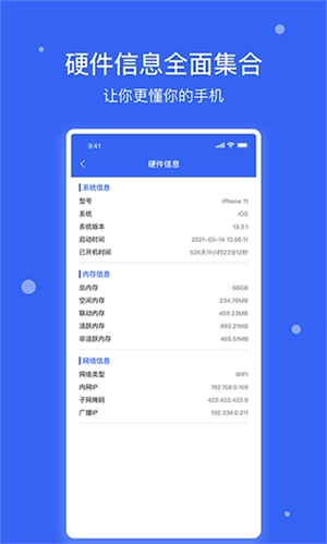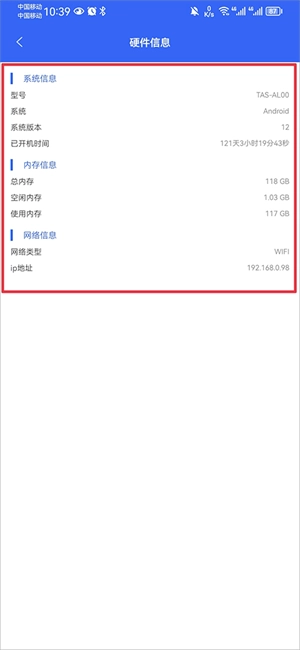 2、进入后即可查看设备的系统信息、内存信息、网络信息的详细数据