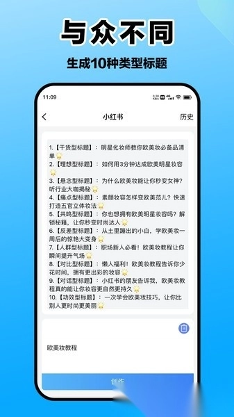 想让你的内容更吸睛?这款应用能依据关键词迅速生成10种不同风格的标题。不管是小红书笔记、抖音文案,还是朋友圈标题,都能帮你找到最有吸引力的表达,30秒内就能完成爆款标题的创作。