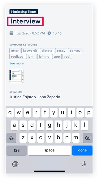 你可以修改扬声器的名称,点击人员图标就能更改姓名;Otter 用户还可以进行用户链接操作。