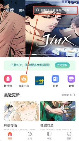 打开后,点击首页右上方的搜索框,输入漫画名称,就能完成搜索。