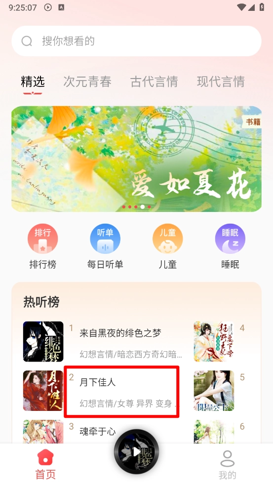 1、打开应用即可畅听,首页推荐大量好听的书籍,任你挑选。