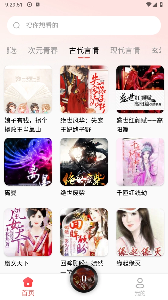 1、支持多种类型内容的在线播放,用户能够挑选自己喜爱的书籍来收听。