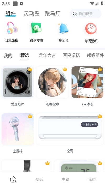 万能主题组件手机版是一款极具吸引力的安卓多功能桌面美化工具。该应用提供了丰富多样的主题模板供用户挑选,大家可以自由搭配组合其中的壁纸、时钟、天气、日历等各类组件,而且软件还支持一键添加或删除小组件,助力用户轻松打造专属的个性化桌面!