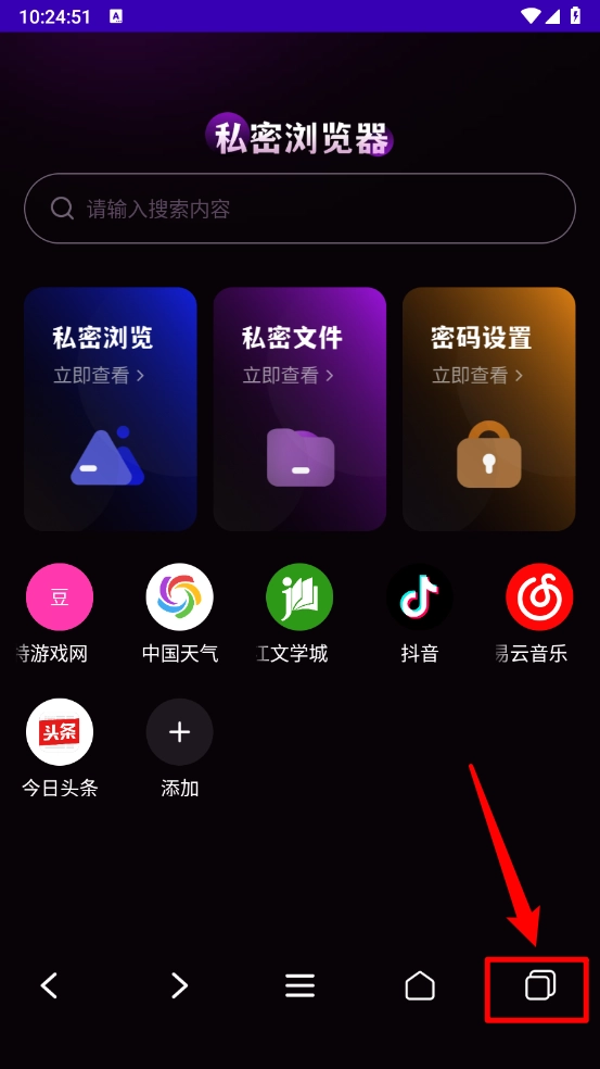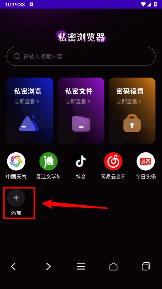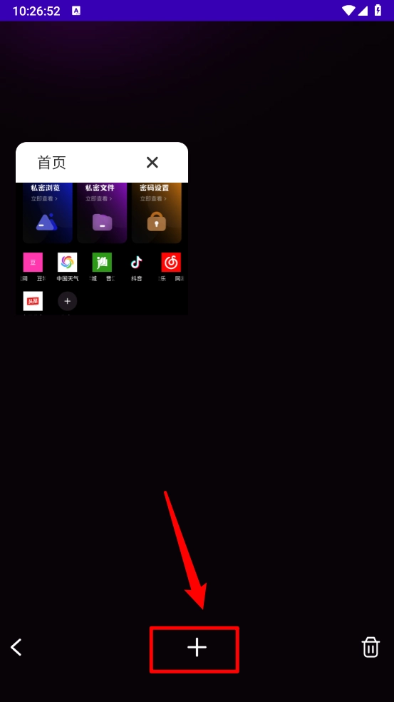4、最后返回主页即可查看添加的网页,长按即可删除网页。