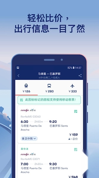 Omio安卓版允许用户轻松比较飞机、火车、公共汽车等多种交通方式的票价和行程信息。