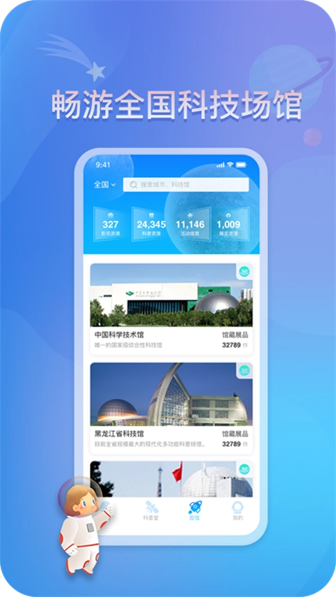 3、“逛馆”模块带领用户云端游历全国科技馆,足不出户领略科技魅力。