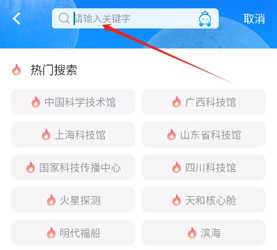 首先,要在首页的搜索框里输入你想参观的科技馆名称,然后执行搜索操作。