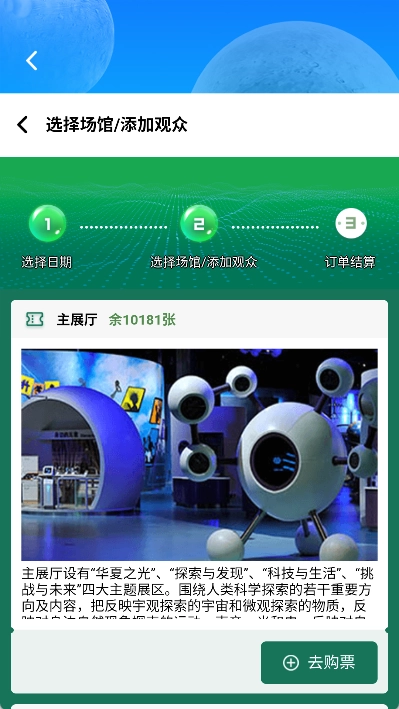 3、在科技馆详情页面中找到“门票预约”选项,点击进入预约流程。