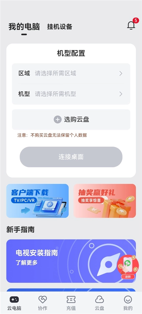1、【手机模式登录】挑选对应的桌面配置,就能接入相应的云电脑桌面。