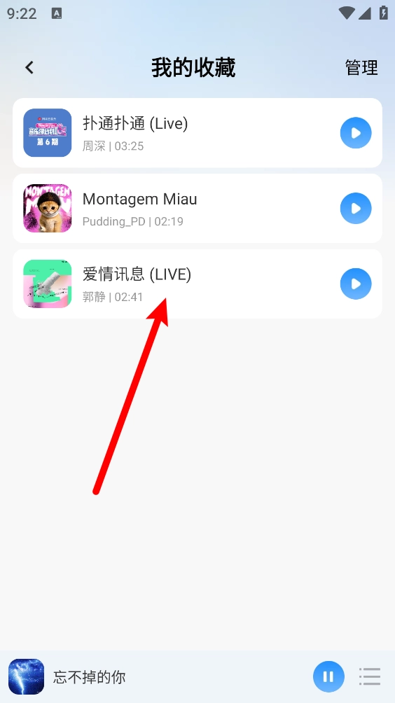 3、最后在我的收藏页面就可以查看所收藏的歌曲。