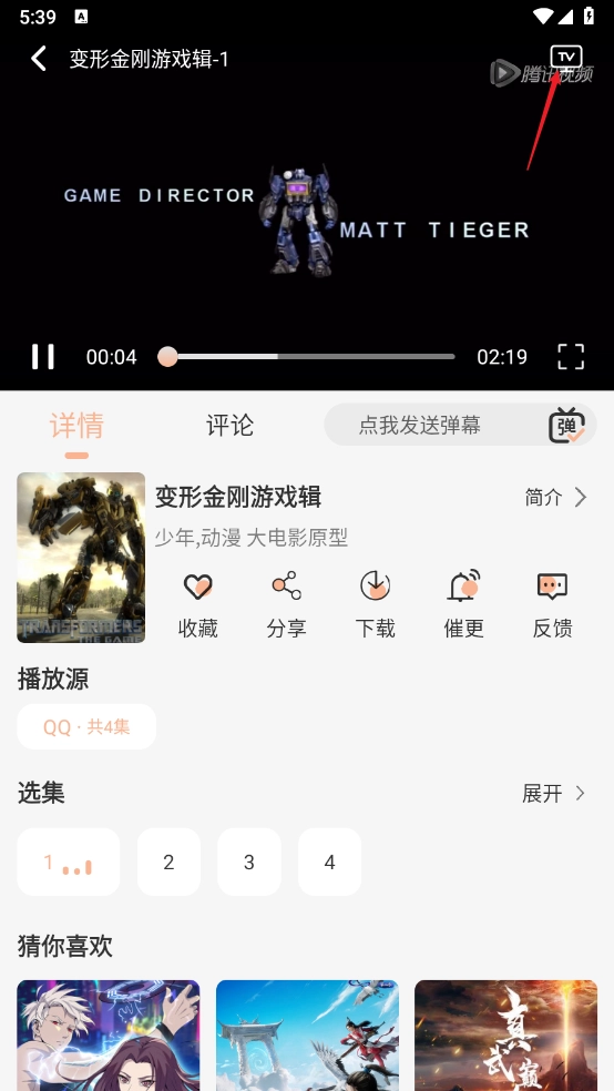 2、进入详情页,点击右上方的"tv"标志。