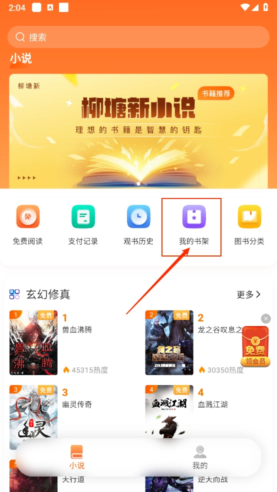 3、返回主页,点击"我的书架"进入。