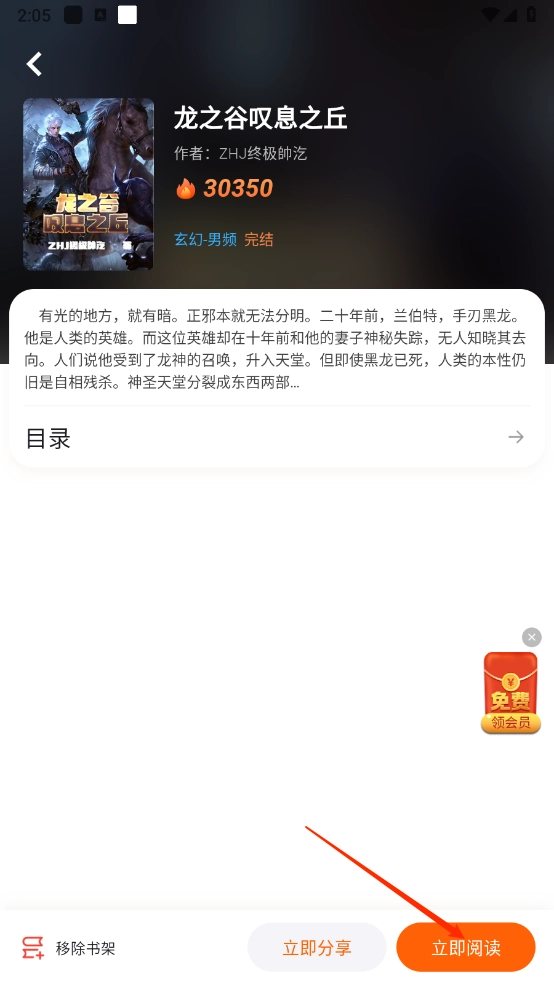 1、在小说详情页面点击“立即阅读”按钮即可进入阅读界面。