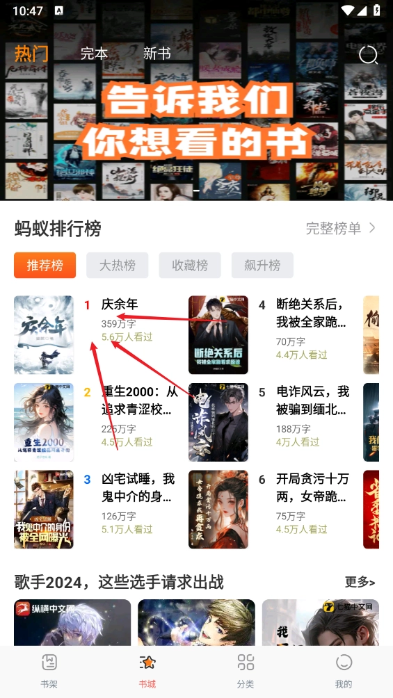 1、先安装豆特游戏软件,打开后进入“书城”板块,挑选自己感兴趣的小说。