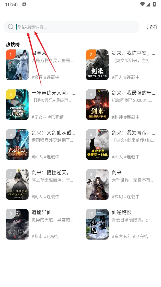 1、点击顶部的搜索框,一键查找想要阅读的小说。
